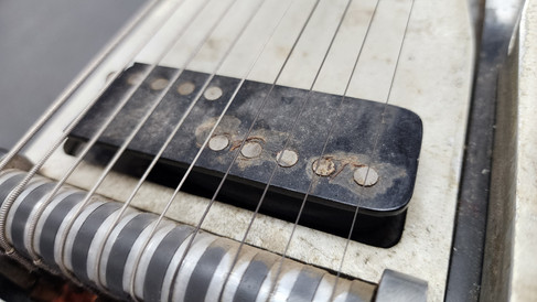The fretboards shown in the photos are 2 of 50 of the original fretboards purchased by Buddy Emmons in the beginning. They have been painted white and clear coated by someone, but the original chrome remains underneath. The original fretboards were not present when took ownership, but we floated two period correct pieces to represent the original design.